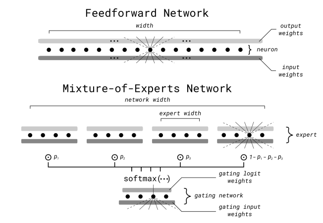 The idea is simple: Assuming the sparsity of neural networks, especially at the feedforward layers (we will get there in a minute) so common of architectures like the Transformer (ChatGPT, Gemini, Sora, etc.) we essentially ‘break’ these layers into smaller groups of identical shape we call ‘experts’.